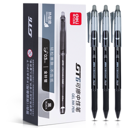 得力(deli)熊猫按动可擦中性笔,0.5mm子弹头书写流畅细腻,晶蓝色外观时尚可爱。具备热可擦功能,方便快捷修改文字。三支装盒售价经济实惠,适合学生和办公人士使用。 查看详情
