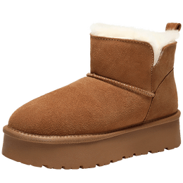 UGG冬季女士经典迷你纯色厚底雪地靴1135092 CHE,采用优质羊皮毛一体材质,内里柔软温暖,有效锁住热量。栗色低调百搭,简约短筒设计方便活动且时尚感强。加厚防滑橡胶鞋底提升高度同时增强抓地力和耐磨性,为冬日出行提供稳固支撑。轻便设计减少负担,让全天候行走更自在。优势:精选羊皮毛一体材质保暖舒适;简约百搭栗色适合多场景穿搭;加厚防滑鞋底安全耐用;短筒款式灵活便捷。购买建议:建议按平时鞋码选择,... 查看详情