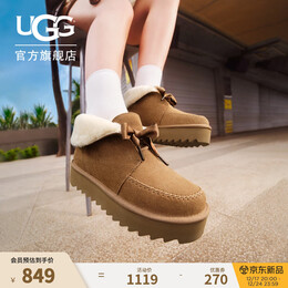 UGG秋季女士时尚舒适纯色圆头厚底保暖系带懒人鞋1143954 CHE,采用优质栗色麂皮材质,柔软细腻。内里配经典羊毛衬里,有效锁温保暖。圆头设计宽松不压脚趾,厚底鞋底缓震防滑,提升行走稳定性。系带方便调节松紧,更贴合脚型且兼具时尚与实用。这款轻便懒人鞋适合通勤、休闲及居家穿着。优势在于天然材料与精湛工艺结合,实现舒适耐用;厚底结构增高显瘦并减轻足部疲劳;简约纯色百搭多种服饰,无论牛仔裤还是裙装均... 查看详情