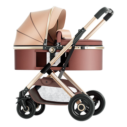 ANGI BABY婴儿推车可坐可躺婴儿车轻便折叠新生儿减震高景观双向儿童手推车 顶配香槟金【一键收车+PU橡胶轮]