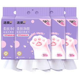 洁柔洗脸巾悬挂式160抽*4提绵柔巾 一次性毛巾干湿两用大规格XL码整箱