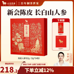 《八马 陈皮人参茶》精选广东新会优质陈皮与吉林长白山珍稀人参,采用传统工艺精制。茶汤金黄透亮,香气浓郁持久,融合陈皮清新果香与人参甘甜滋补,口感丰富。礼盒装设计典雅大方,附赠试饮包和精美礼袋,是馈赠亲友、商务送礼的佳品。商品优势在于选用地道原料,新会陈皮理气健脾;长白山人参增强免疫力、提神养生。两者结合味道醇厚且具多重保健功效。包装严谨细致,保障品质体验。购买建议:适合注重健康养生及追求高品质生活...