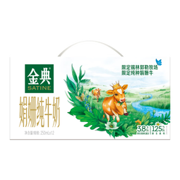 金典(SATINE)锡林郭勒娟姗纯牛奶(双限定)是伊利推出的优质牛奶,每盒250ml*12盒*1箱,产自5月。含3.8g乳蛋白,口感细腻顺滑,营养丰富。采用锡林郭勒草原新鲜牧场鲜奶制作而成,保留最纯正味道和营养。商品优势:高品质天然原料、无添加化学物质;精美礼盒包装;适中乳脂肪含量、浓郁香甜口感。购买建议:喜欢纯正牛奶味道及注重健康者值得尝试。日常饮用或送礼皆宜。建议在官方授权渠道或知名电商平台购...