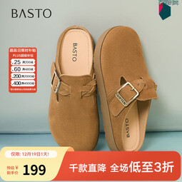 百思图夏季新款复古休闲穆勒鞋平跟女拖鞋博肯拖D3062BH5 驼色 34