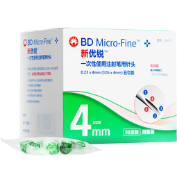 新优锐BD针头胰岛素针头,规格0.23mm(32G)*4mm,共98支装,专为糖尿病患者设计。适配多品牌胰岛素注射笔,确保注射安全便捷。超细32G针径减少刺痛感,提高舒适度;4mm短针降低穿刺深度风险,适合各种体型用户。采用高品质不锈钢材质和先进工艺制造,保证锋利耐用,一次性使用避免交叉感染。包装密封严实,保持无菌状态。购买建议:本款针头特别适合频繁自我注射胰岛素的患者及对疼痛敏感者,可显著提升注...