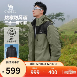 骆驼(CAMEL)三合一抗寒羽绒服男士轻薄白鸭绒户外加厚外套秋冬款M33CF00095