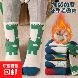加厚儿童袜子秋冬季学生男女孩长筒男童宝宝加绒保暖蓄热毛圈袜 5色随机 3双 1-3岁