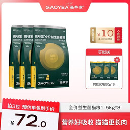 高爷家全价益生菌3.0猫粮 成猫猫粮 高肉含量冻干猫粮 益生菌3.0 1.5kg*3包+150g试吃