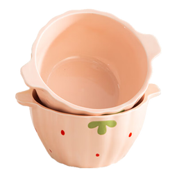 少女心草莓双耳碗勺加厚汤碗沙拉碗饭碗家用碗高颜值釉下彩餐具 浅粉草莓双耳碗(2碗2勺) 4件套