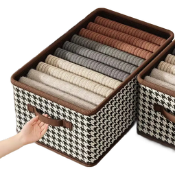 千鸟格收纳箱大尺寸硬板裤子收纳盒牛仔裤毛衣收纳神器女士手提包 无纺布-千鸟格【一个装】