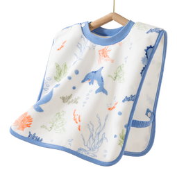 《贝肽斯儿童洗漱巾宝宝刷牙围兜洗脸巾漱口巾防水不湿衣多功能毛巾 【双面防水马甲式】海之微笑》是专为儿童设计的多功能洗漱巾,采用双面防水设计,有效避免溅水弄湿衣物。马甲式设计完美包裹孩子身体,保持舒适干净。可用于刷牙、洗脸和漱口等多种场景,实用便捷。