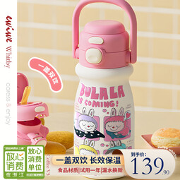 EWIWE新款卡通布拉拉保温杯男女孩防摔一杯双饮大容量便携吸管水杯 粉色/食品不锈钢材质/约500ml
