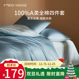 MIDO HOUSE铭都60支纯棉床上四件套A类全棉四件套亲肤床单被套家用床上用品 【60支全棉贡缎】桑蓝色配晴蓝灰 1.2m-三件套 床单款 (被套150*200cm)