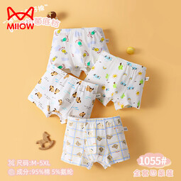 猫人(MiiOW)儿童内裤男童女童纯棉抗菌平角亲肤透气A类精梳棉四角小短裤 男童-小灰熊(紧密精梳棉) 110 M(15-25)斤