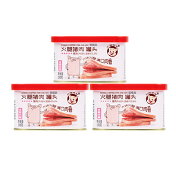 小猪呵呵火腿猪肉罐头92%猪肉高蛋白火锅泡面三明治即食 火腿猪肉198克*3罐92%猪肉