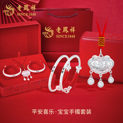 老凤祥婴儿纯银手镯宝宝足银镯子平安锁项链套装周岁满月礼物 足银平安喜乐套装【喜乐手镯+平安锁】约30g