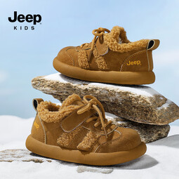 JEEPjeep儿童大棉鞋冬季跑步防滑运动儿童板鞋潮加绒加厚保暖软底冬鞋 浅棕色 27