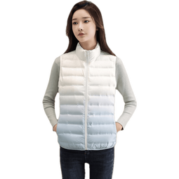 鸭鸭(YAYA)轻薄款羽绒服女秋冬新款马甲渐变立领宽松直筒内搭鸭绒背心外穿 渐变蓝色 M 【120斤以内】