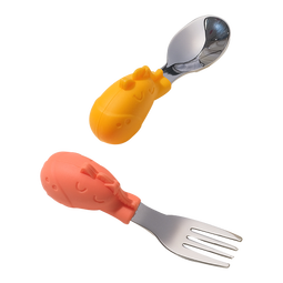 英氏(YEEHOO)宝宝叉勺学吃饭短柄勺子婴儿训练勺叉辅食勺不锈钢儿童餐具装 橙黄组合+收纳盒