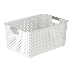 稻草熊零食玩具收纳篮家用杂物整理筐大容量书本储物篮厨房多功能塑料盒 中号1个装【26.5*17.5*11】 北欧白