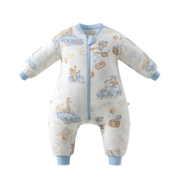 贝肽斯睡袋婴儿春秋冬季儿童宝宝3-6岁纯棉分腿式防踢被保暖惊跳连体衣 格兰城邦【春秋双层 20-26°C】猫肚棉 S码 建议身高60-85cm建议0.6-1.3岁