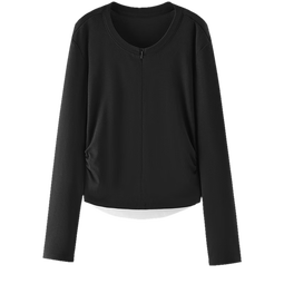 森马[商场同款]长袖T恤女短款显瘦设计感2025新款修身假两件秋装 黑色90001 S