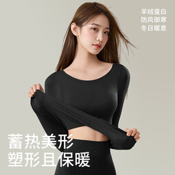 安之伴保暖内衣女士秋衣秋裤套装2025冬季款羊绒塑身亲肤内搭打底衫 黑色(保暖且超柔软) M