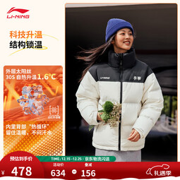 李宁火锅羽绒服|防泼水防风科技鸭绒短款男女25秋冬季宽松运动外套 乳白色-1 S