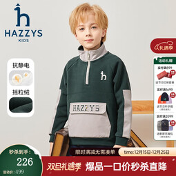 哈吉斯(HAZZYS)品牌童装男童卫衣秋新品防静电蓬松摇粒绒立领撞色保暖卫衣 深青绿 105