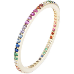 星眸珠宝18K金单排满钻彩色宝石真钻石戒指女欧美ins风镶钻百搭手饰送七夕 S925镶锆石 (6-8美码)
