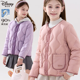 迪士尼女童羽绒服儿童轻薄内胆秋冬款中大童校服神器白鸭绒保暖上衣童装 粉色 120 cm
