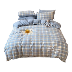 无印良品100%纯棉四件套床上用品全棉床单枕套被套200*230cm1.5/1.8米床 蓝格