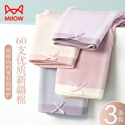 猫人(MiiOW)女士内裤女纯棉底档贴身无痕少女休闲性感短裤三条送女友 白色+浅肤+浅绿 L (100-115斤)