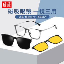目匠近视套镜磁吸眼镜男三合一偏光配度数防雾墨镜开车专用眼镜框 5088枪框+偏光灰+夜视片 单镜架 可试戴