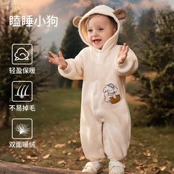 欧孕(OUYUN)宝宝秋装保暖加绒连体衣男女宝宝冬季外出服哈衣撸猫绒爬爬服 瞌睡小狗【软糯撸猫绒】 73cm