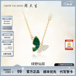 周大生绿野仙踪蝴蝶项链女纯银锁骨链孔雀石送女生圣诞礼物送女生 绿野仙踪项链