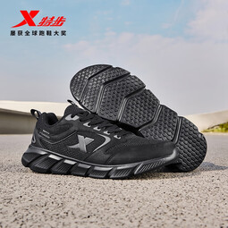 特步(XTEP)男鞋跑步鞋新款夏季厚底旅游透气轻便网面休闲运动鞋慢跑鞋子男 黑 39