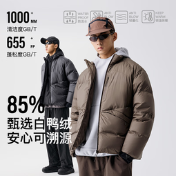 熊猫·本(ben.panda)纯色羽绒服加厚85%白鸭绒立领防泼水大口袋外套宽松情侣外穿上衣 乌木色 S