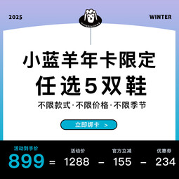小蓝羊【小蓝羊合约卡】童鞋双十一限时年卡全店任选5双8双 小蓝羊合约卡5双 30
