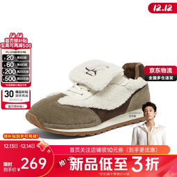 拔佳休闲鞋女2024冬通勤德训鞋运动毛毛鞋8031DDM4 卡其/白 35