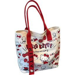 这款卡通蝴蝶结新款日系极简帆布包,尺寸27*24cm,适合上课、通勤等场合使用。采用优质帆布材质制成,轻便舒适且耐磨耐用。设计可爱,饰有卡通蝴蝶结和kt猫图案;多功能性强,可单肩斜挎或手提使用。适合学生、上班族等人群,满足各种需求。