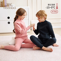 英氏(YEEHOO)儿童立领保暖内衣加绒加厚套装冬季家居服男女童秋衣秋裤 深蓝色【男童款】(470G) 110