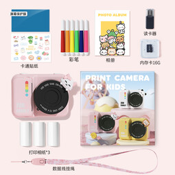 乐乐鱼儿童相机可拍照拍立得数码玩具可热敏纸打印男女孩儿童生日礼物 【粉猫咪16G】打印相机3卷热敏纸