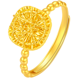 老庙黄金戒指爆闪小方糖足金戒指女款节礼物送女友老婆纪念日求婚 约2.91g