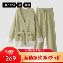 蕉内7系女士睡衣羊毛长袖长裤抗菌秋冬季可外穿加厚睡袍家居服套装 【女士】甸黄绿 S