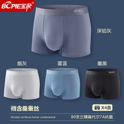 宝派4条装80支奥地利兰精莫代尔蚕丝裆男士导汗7A抗菌内裤男式四角裤 【深铂灰+烟灰+雾蓝+墨黑】 4条 L 【荐100-120斤】