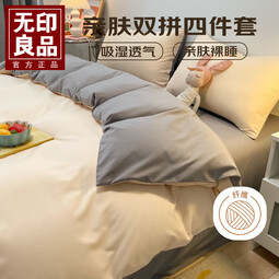 无印良品亲肤水洗床上用品四件套1.5/1.8m床-床单四件套 卡其+浅灰 【亲肤裸睡】 1.5/1.8m 床单款 -被套200*230cm