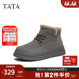 他她(TATA)冬季保暖雪地靴男鞋防水厚底户外牛皮加绒棉鞋OEX01DD4 灰色(仿毛里) 37