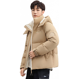 鸭鸭(YAYA)王一博泡芙羽绒服男女同款2024年冬短款连帽时尚休闲保暖情侣外套 咖色 S /165