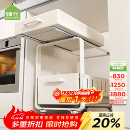 帅仕厨房下水槽置物架调料架碗碟架抽拉式水池下橱柜拉篮分层收纳架子 【灵动滑轨】高款25长-白色抽拉